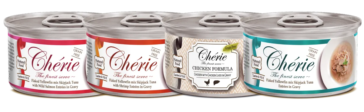 The product line "Cherie Signature Gravy Series" - is a combination of the freshest seafood or tender pieces of white chicken meat with specialty sauces based on original recipes that will appeal to cats of any breed and age.