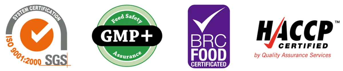 vitamin A 10695 IU/kg, vitamin E 106,9 IU/kg, choline chloride 750 mg/kg, taurine 492 mg/kg, vitamin B1 41,5 mg/kg, niacin 13,7 mg/kg, calcium-d-pantothenate 12 mg/kg, vitamin B2 2,7 mg/kg, vitamin B6 1,1 mg/kg, folic acid 0,2 mg/kg, biotin 0,09 mg/kg, beta-carotene 0,05 mg/kg, vitamin B12 0,03 mg/kg, 3b108 (Fe: 14.1 mg/kg), 3b607 (Zn: 13.2 mg/kg), 3b506 (Mn: 1.3 mg/kg), 3b413 (Cu: 0.9 mg/kg), 3b201 (I: 0.8 mg/kg)
