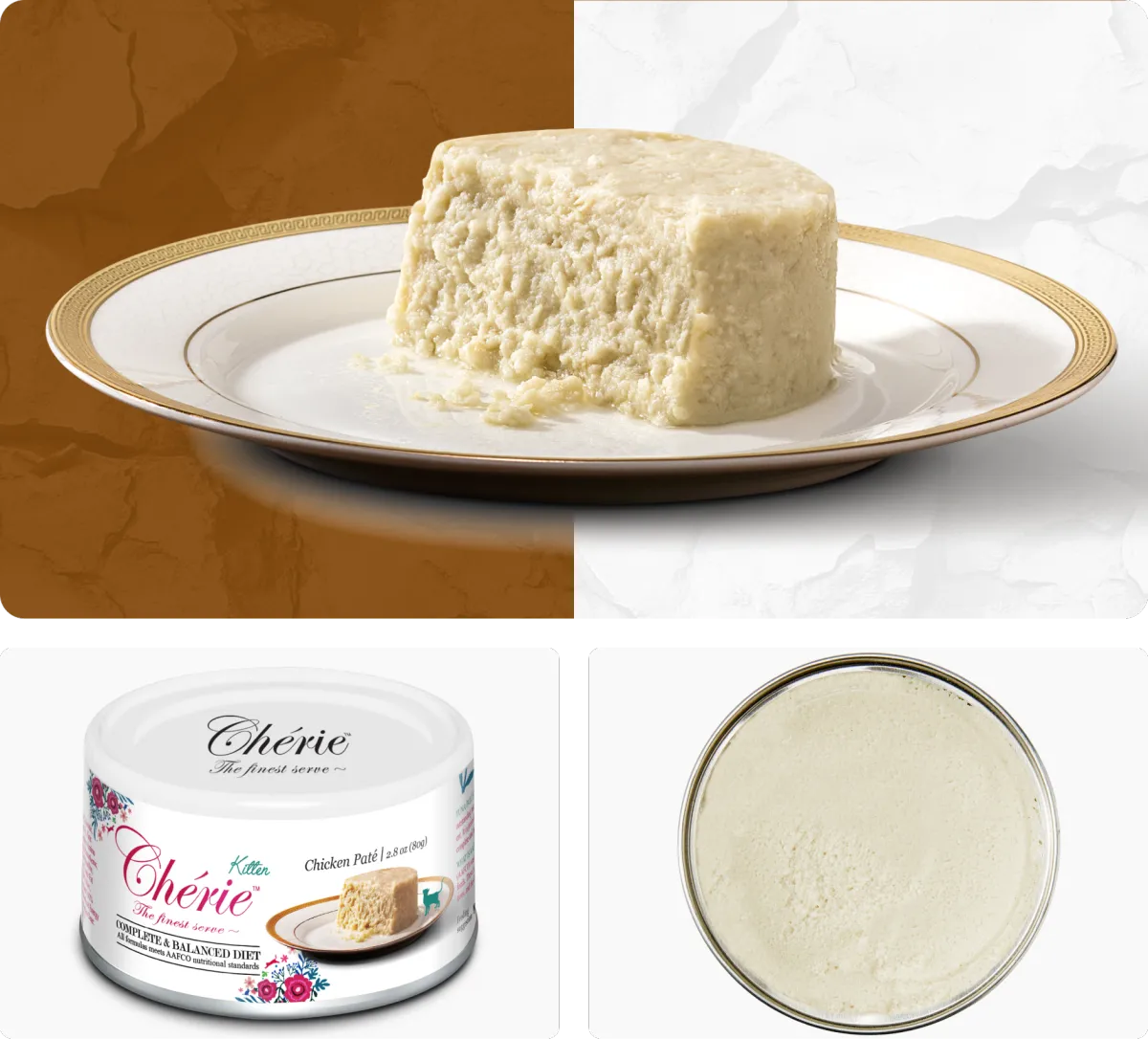 Delicate chicken served in mousse format. Support for adult cats during periods of increased nutritional needs, such as pregnancy, lactation, or recovery. Also suitable for weakened animals requiring high-calorie food.