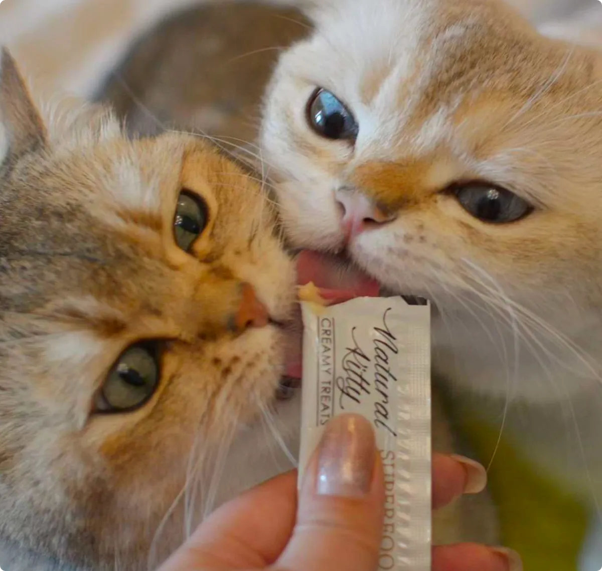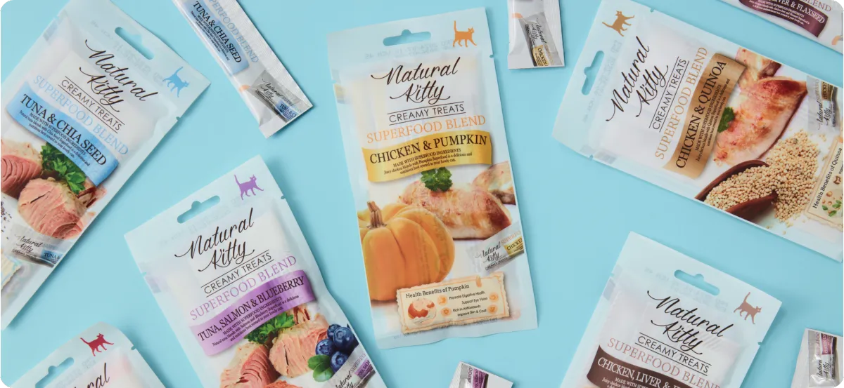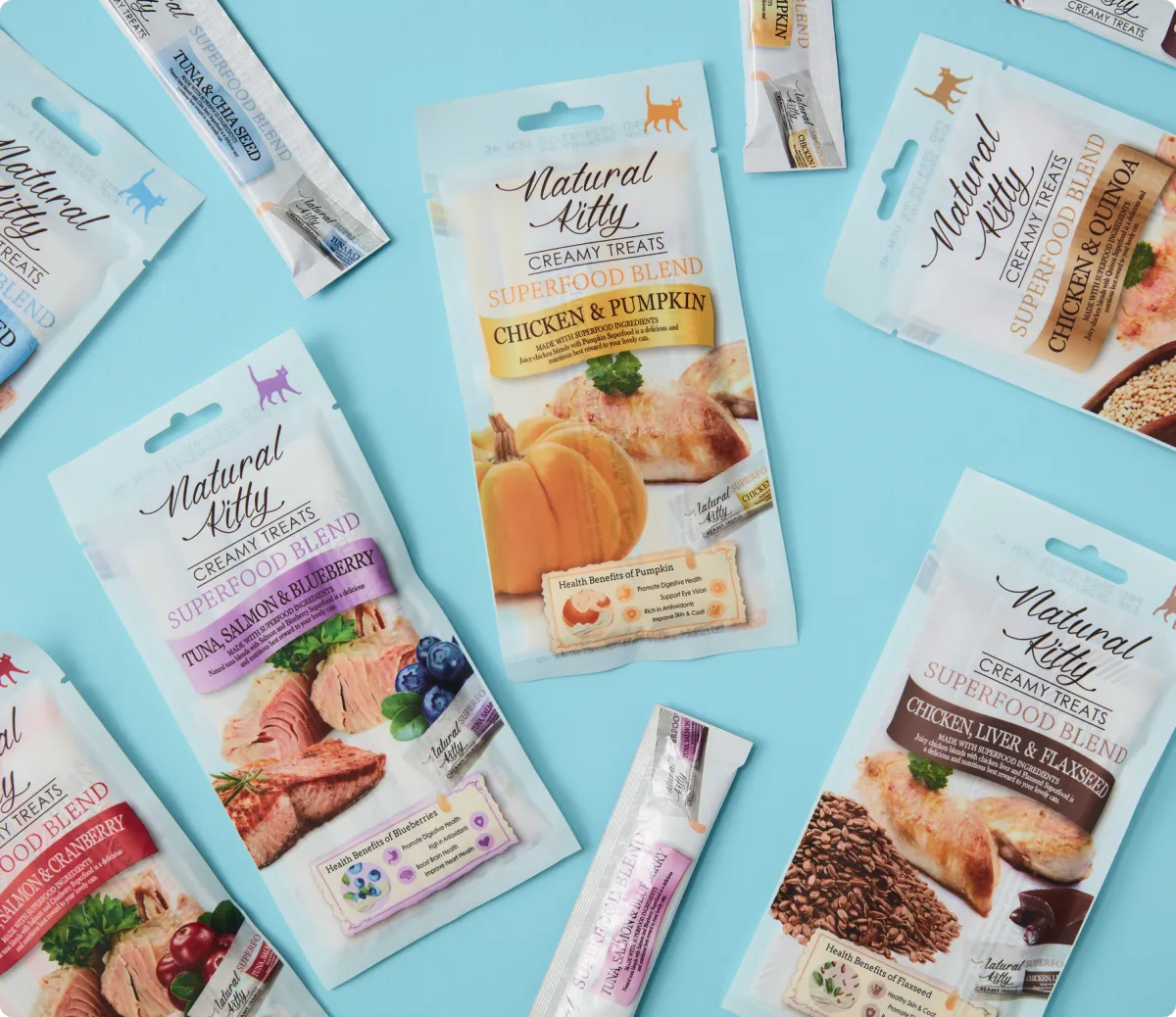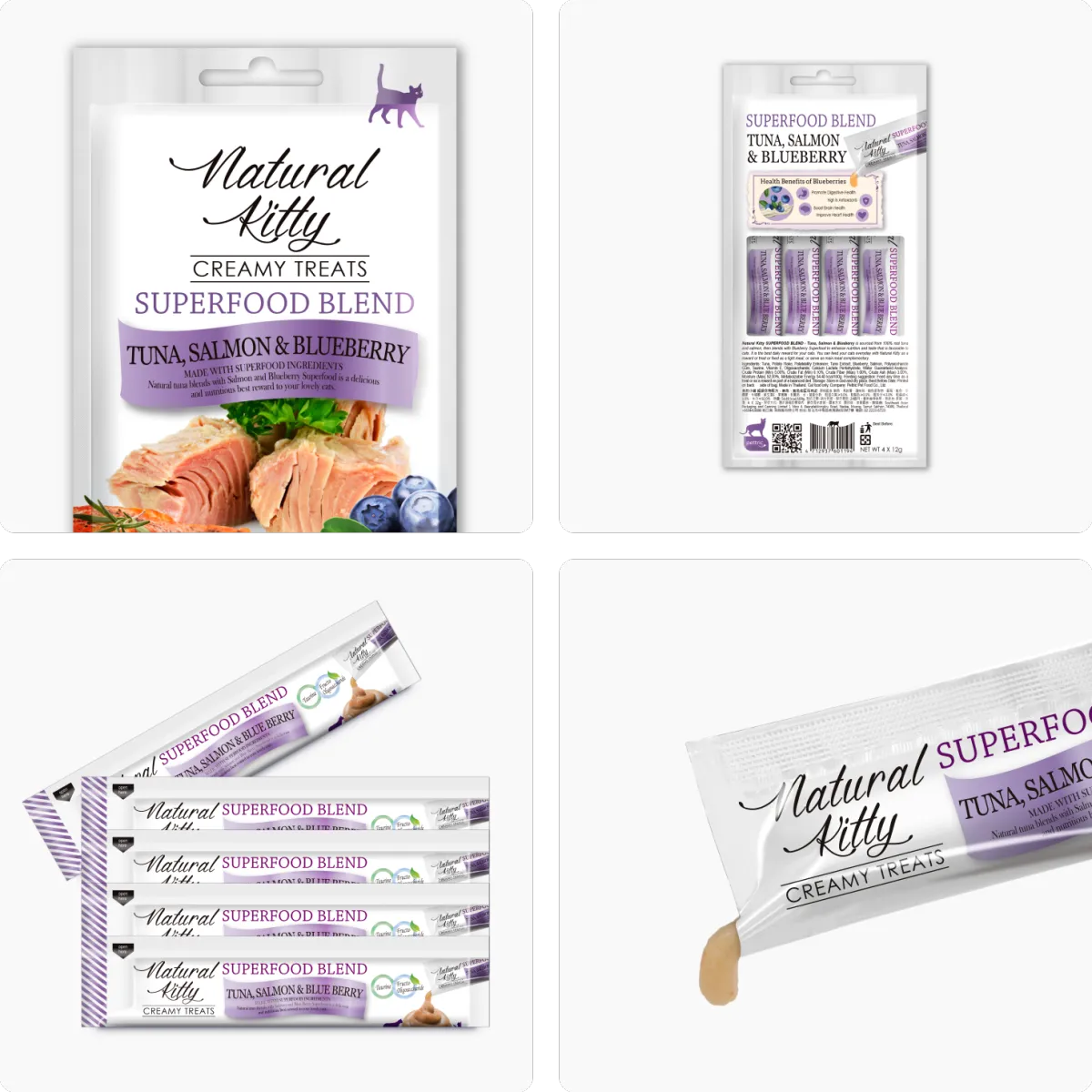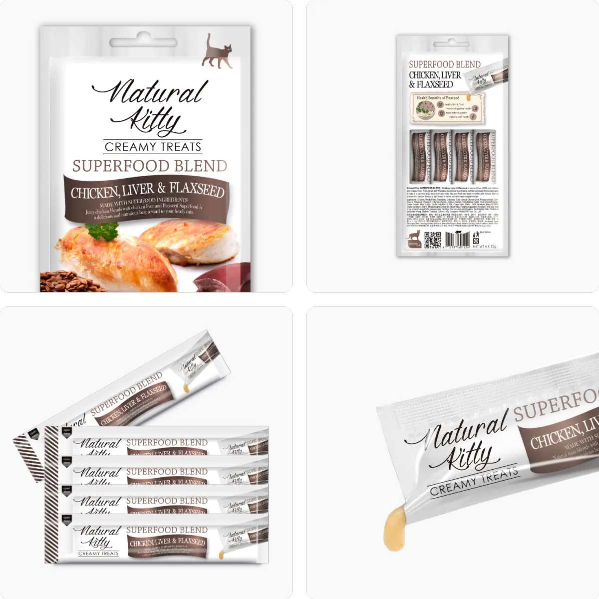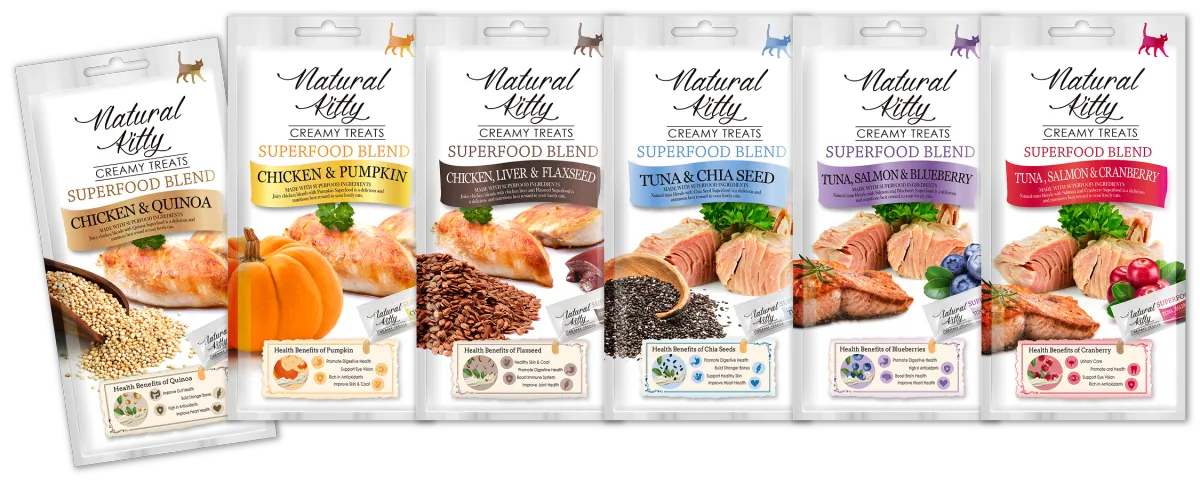 Natural Kitty creamy superfoods are perfect as a light snack or a topping for the main meal