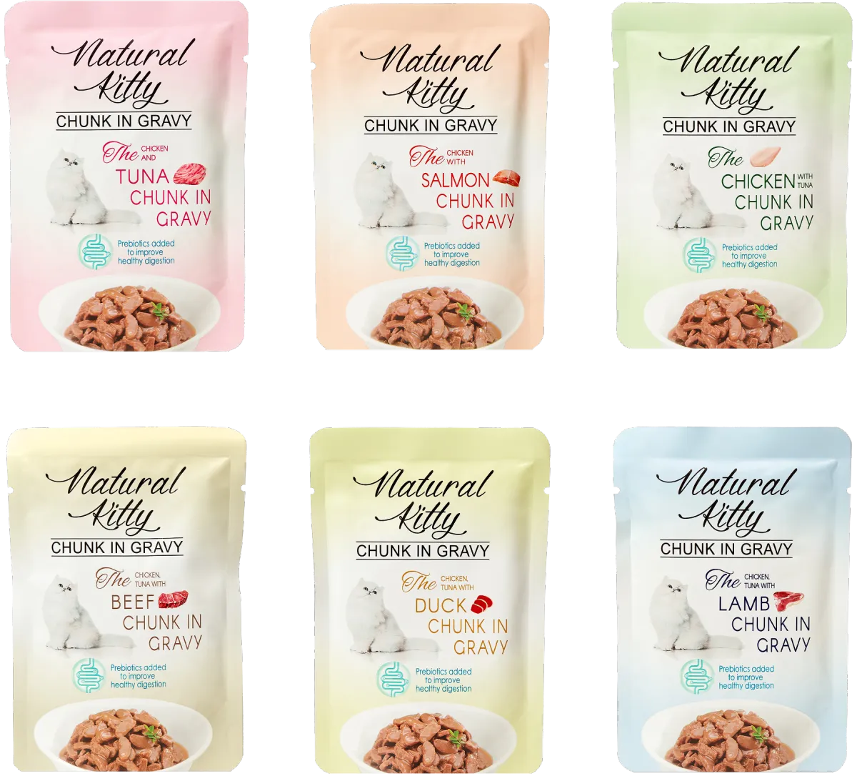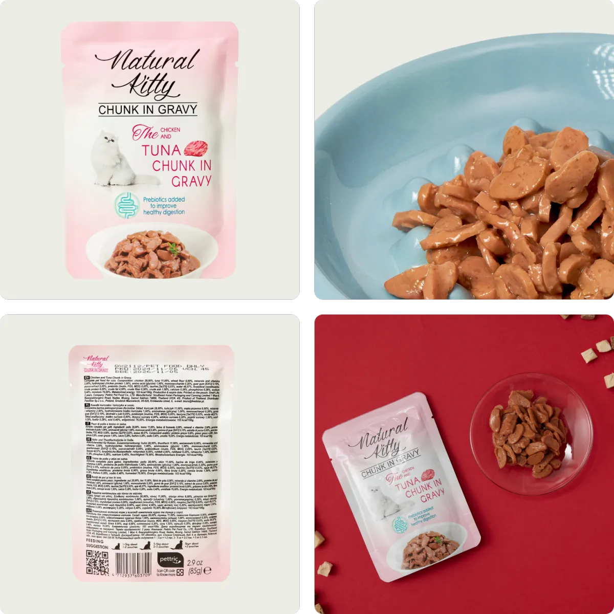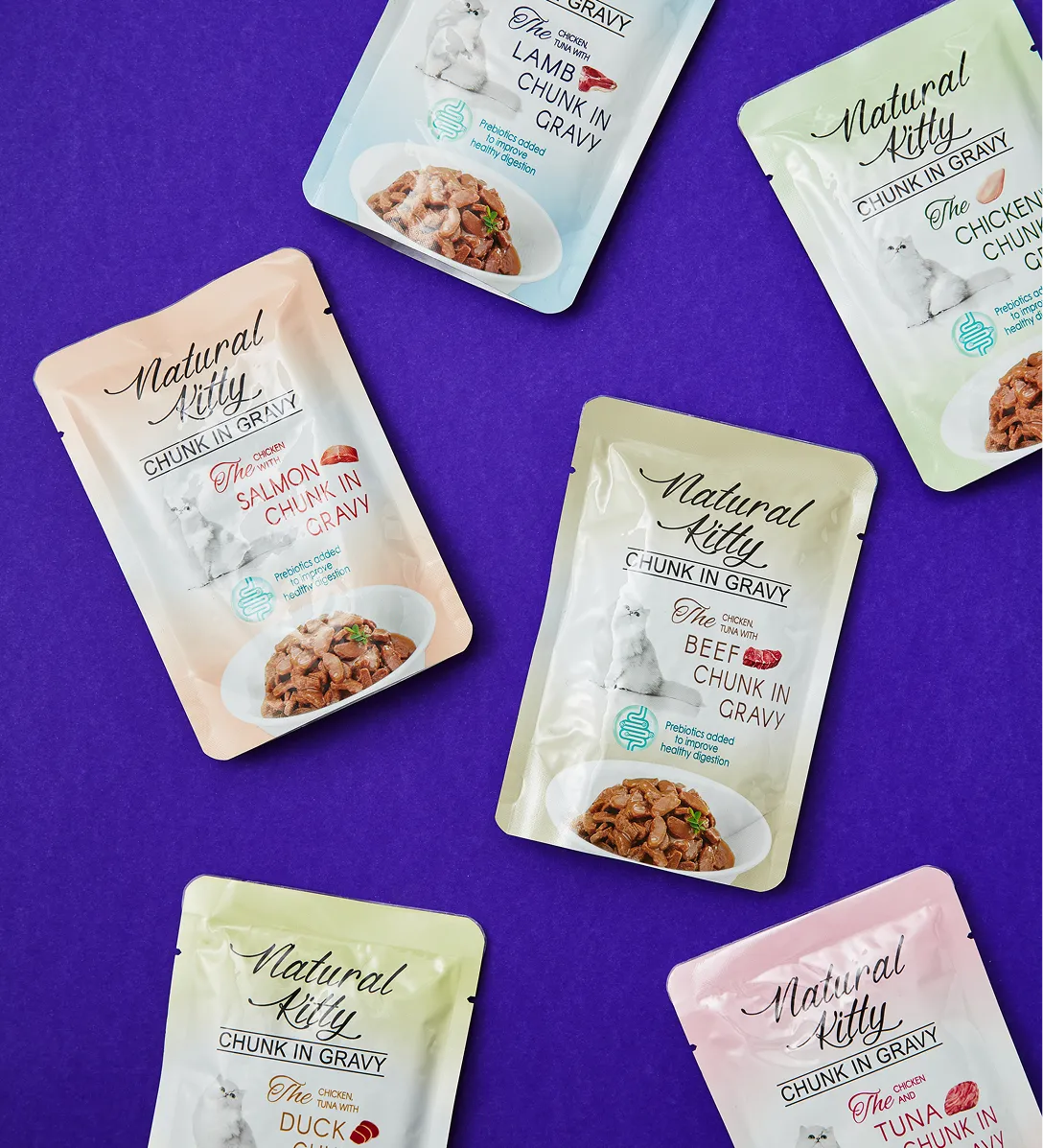 Super palatable. Savior of picky cat. Rich in aroma and texture, delivering a dual sensory delight for both smell and taste, satisfying even the most discerning feline palates. Formula included three healthy prebiotics Inulin, FOS and MOS to improve digestion. Meet AAFCO complete and balanced nutrition standard. Available in six flavors, a perfect everyday meal for your beloved feline.