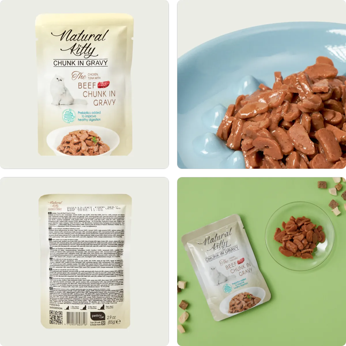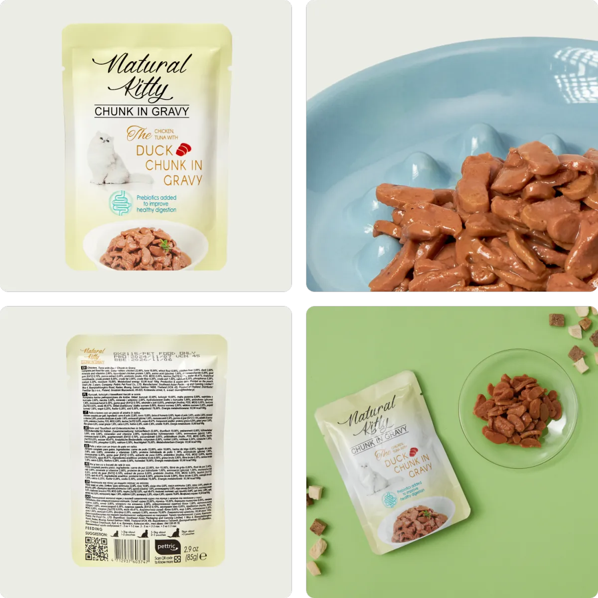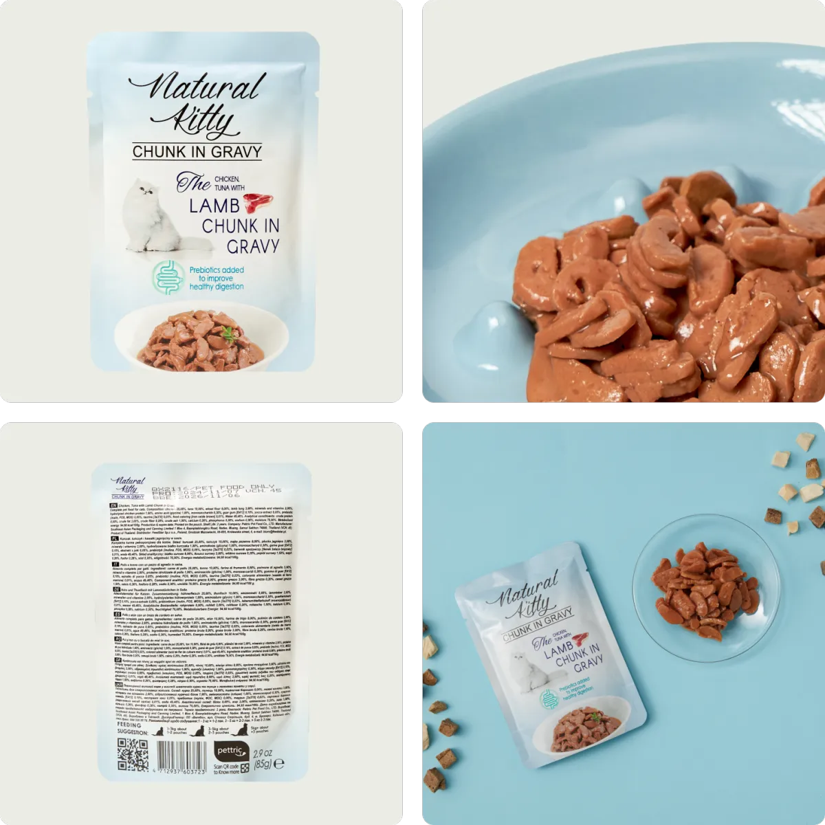 Super palatable. Savior of picky cat. Rich in aroma and texture, delivering a dual sensory delight for both smell and taste, satisfying even the most discerning feline palates. Formula included three healthy prebiotics Inulin, FOS and MOS to improve digestion. Meet AAFCO complete and balanced nutrition standard. Available in six flavors, a perfect everyday meal for your beloved feline.