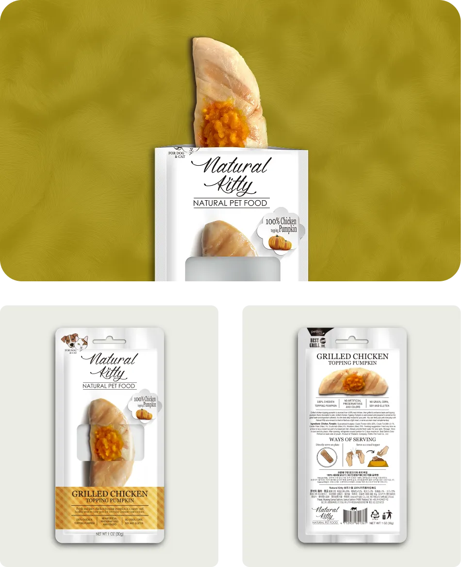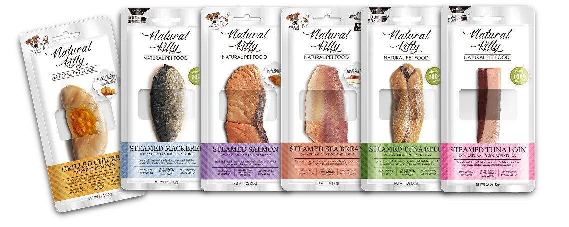 Natural Kitty Chicken Fillet is a natural treat for cats and dogs, made exclusively with mackerel. This product is rich in protein, low in fat, fiber, and ash, and provides a high energy value.