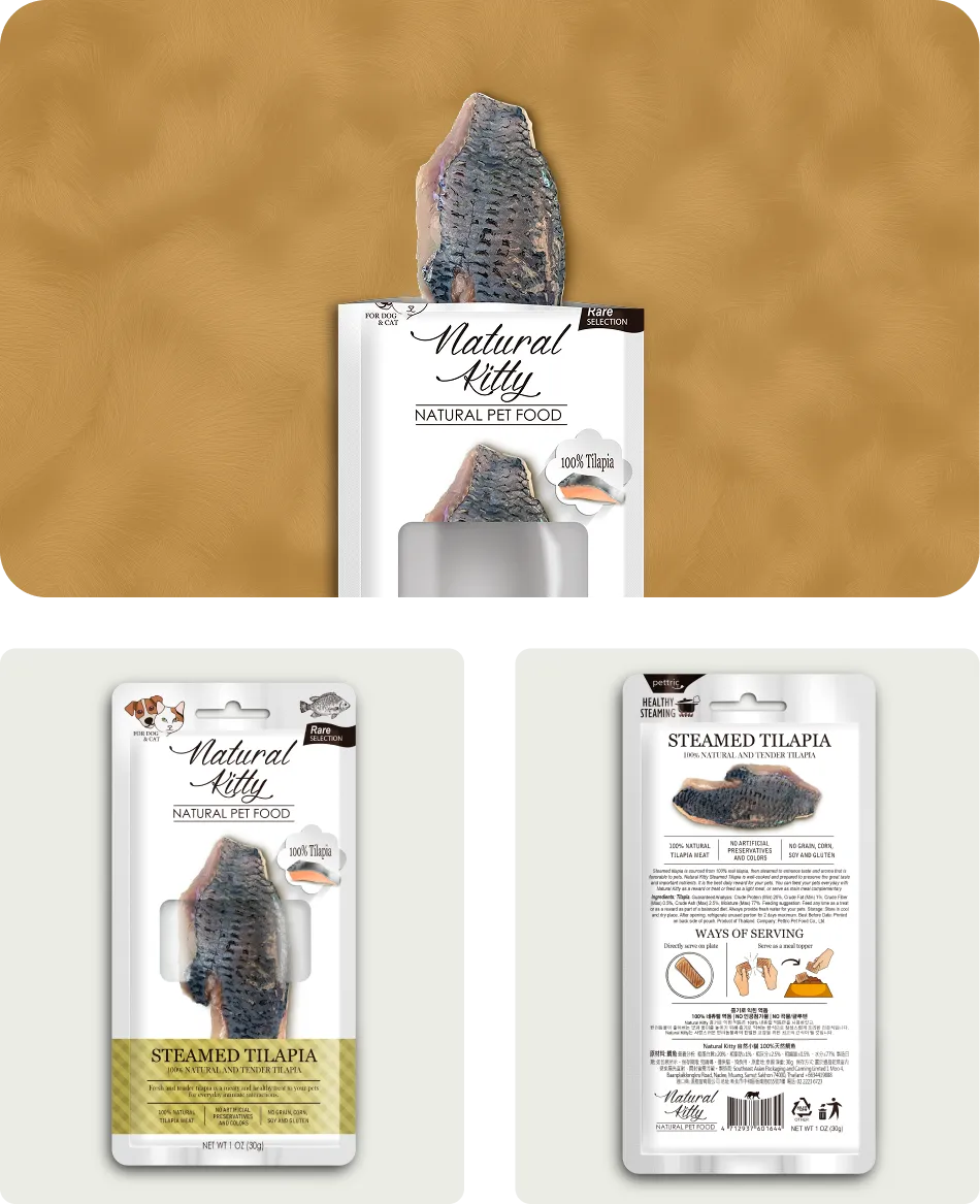 Natural Kitty Tilapia Fillet is a natural treat for cats and dogs, made exclusively with tilapia. This product is rich in protein, low in fat, fiber, and ash, and provides a high energy value.